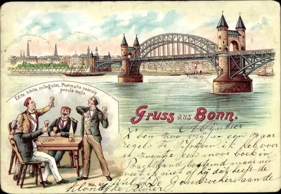 Litho Bonn am Rhein, Brücke, Stadt