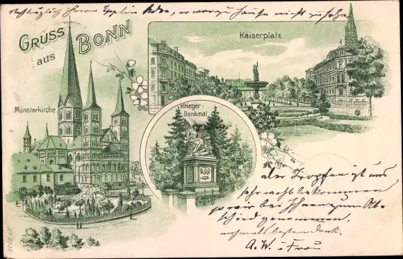 Litho Bonn am Rhein, Kaiserpfalz, Kriegerdenkmal, Münsterkirche