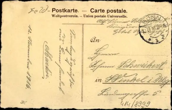 Zustand, siehe Scan, gelaufen, 1916 - ca 14 cm X 9 cm