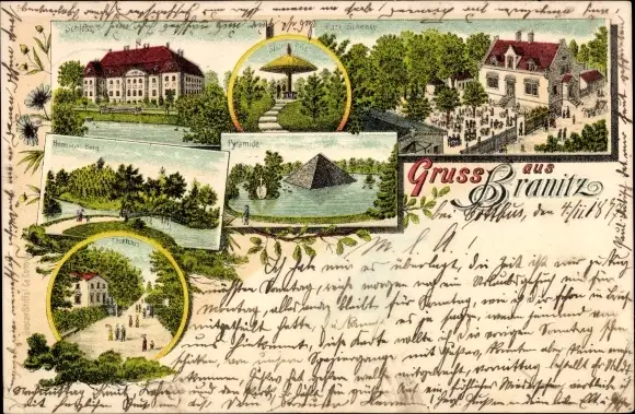 Litho Branitz Cottbus in der Niederlausitz, Schloss, Parkschenke, Pyramide