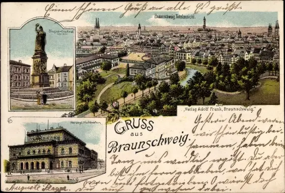 Litho Braunschweig in Niedersachsen, Siegesdenkmal, Hoftheater, Totalansicht