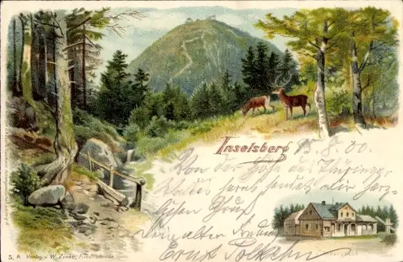 Litho Brotterode in Thüringen, Inselsberg, Hirsche, Heuberghaus