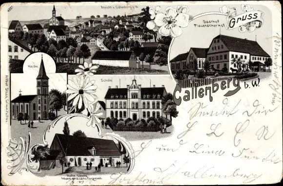 Litho Callenberg im Landkreis Zwickau, Gasthof Plauenscher Hof, Schule
