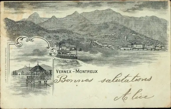 Litho Clarens Vernex Montreux Kanton Waadt, Panorama, Dampfer