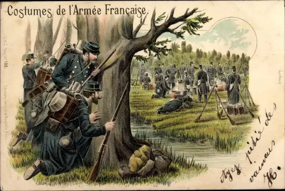 Litho Costumes de l'Armée Francaise, französische Soldaten in Uniform