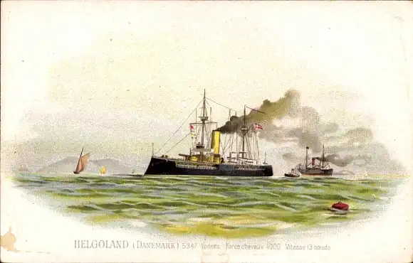 Litho Dänisches Kriegsschiff, Helgoland