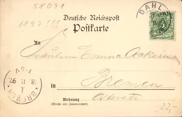 Zustand, siehe Scan, gelaufen, 1897 - ca 14 cm X 9 cm