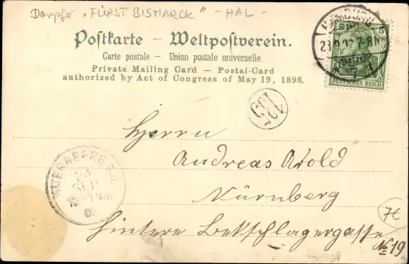 Litho Dampfer Fürst Bismarck, HAPAG