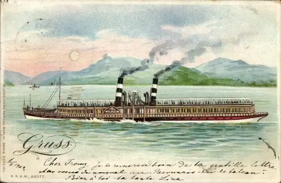 Litho Dampfer Wilhelm auf dem Rhein