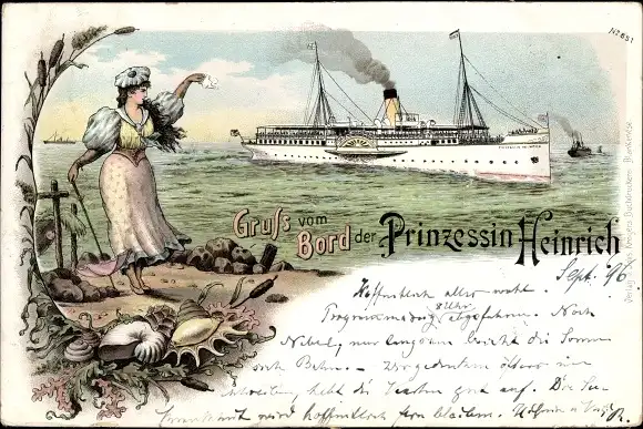 Litho Dampfschiff Prinzessin Heinrich, HAPAG Seebäderdienst, Muscheln