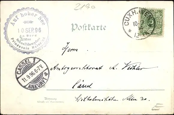 Zustand, siehe Scan, gelaufen, 1896 - ca 14 cm X 9 cm