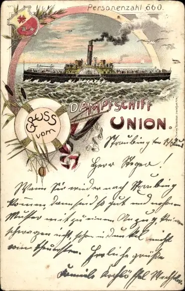 Litho Dampfschiff Union, Seitenraddampfer