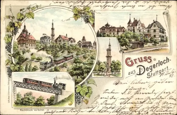 Litho Degerloch Stuttgart in Württemberg, Auffahrt der Zahnradbahn, Turm