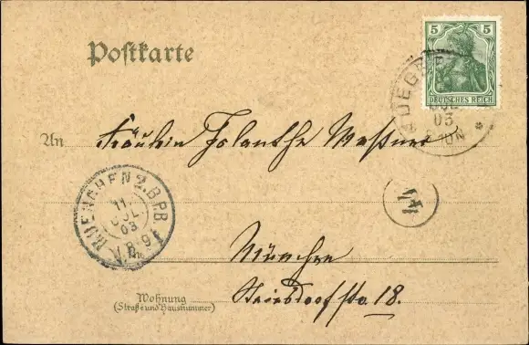 Zustand, siehe Scan, gelaufen, 1903 - ca 14 cm X 9 cm