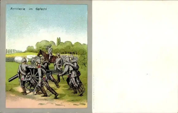Litho Deutsche Artillerie im Gefecht, Soldaten, Kaiserzeit
