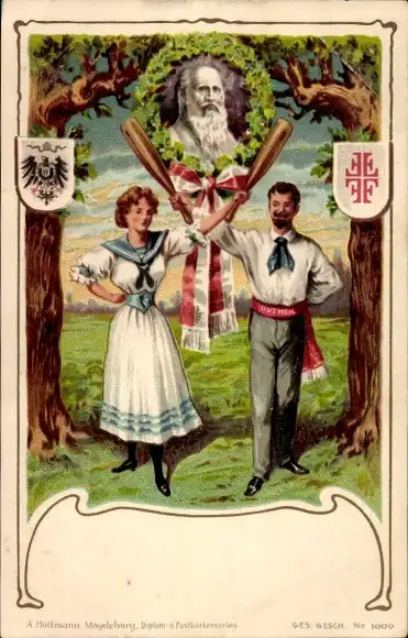 Litho Deutscher Turnerbund, Turner mit Kegeln, Turnvater Jahn