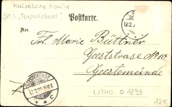 Litho Deutsches Kriegsschiff, SMS Torpedoboot, Kaiserliche Marine