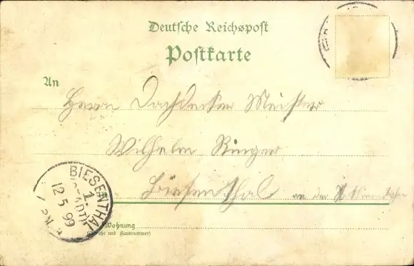 Zustand, siehe Scan, gelaufen, 1899 - ca 14 cm X 9 cm