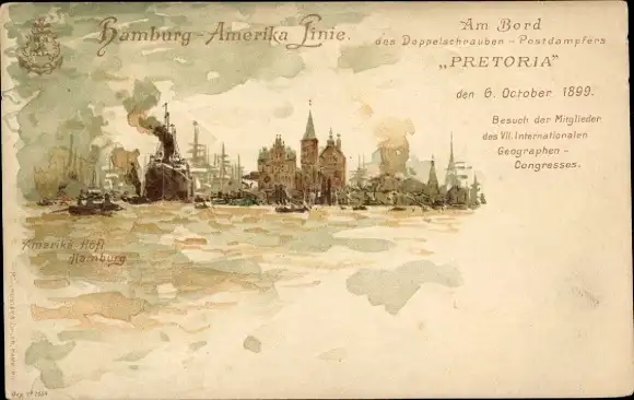 Litho Doppelschrauben-Postdampfer Pretoria, 1899, HAPAG