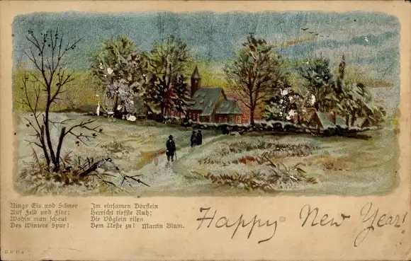 Litho Dorfidyll, Kirche, Schnee, Winter, Rings Eis und Schnee...