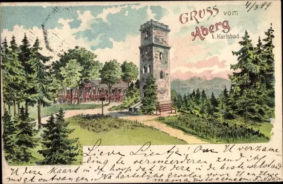 Litho Doubí Aich Karlovy Vary Karlsbad Stadt, Aberg, Aussichtsturm