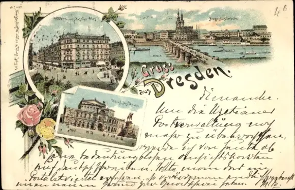 Litho Dresden Altstadt, Augustusbrücke, Theater