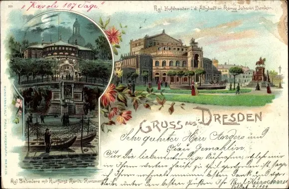 Litho Dresden Altstadt, Kgl. Belvedere, Kgl. Hoftheater, König Johann Denkmal