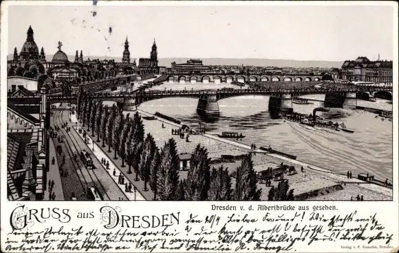 Litho Dresden, Blick von der Albertbrücke auf die Stadt