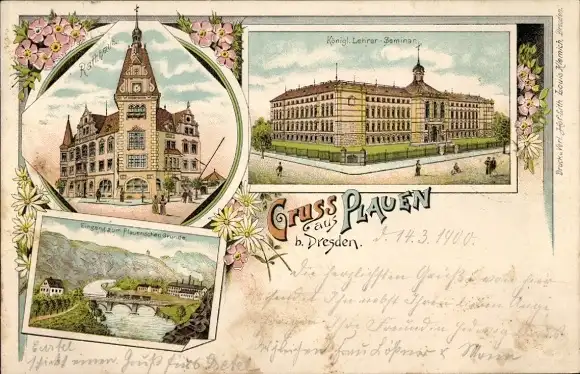 Litho Dresden Plauen, Rathaus, Königliches Lehrerseminar