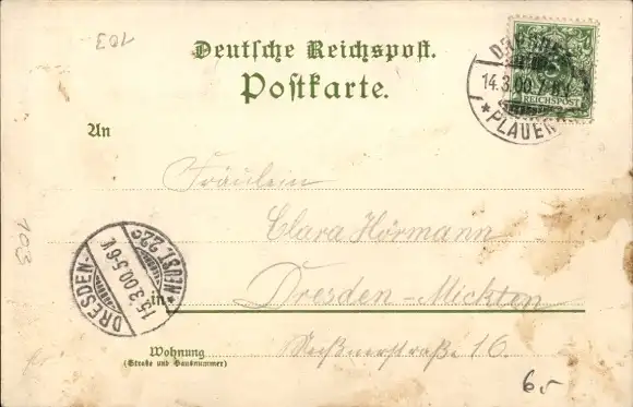 Zustand, siehe Scan, gelaufen, 1900 - ca 15 cm X 9 cm