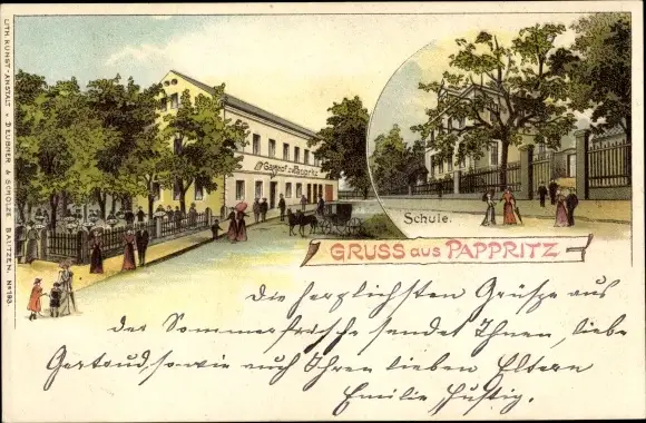 Litho Dresden Schönfeld Weißig Pappritz, Gasthof, Schule