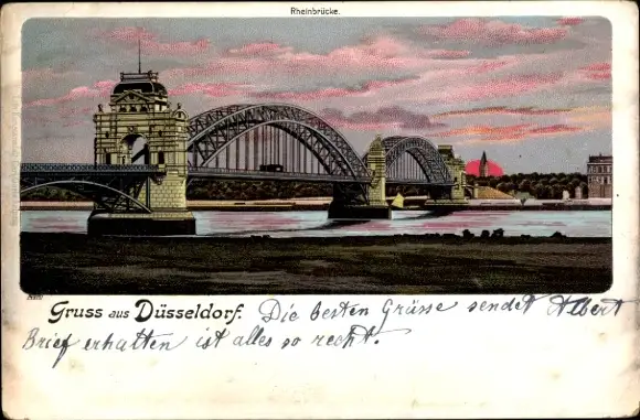 Litho Düsseldorf am Rhein, Rheinbrücke