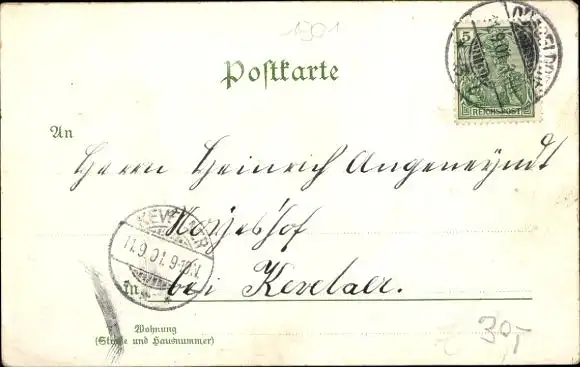 Zustand siehe Scan, gelaufen, 1901 - ca 5 cm X 3 cm