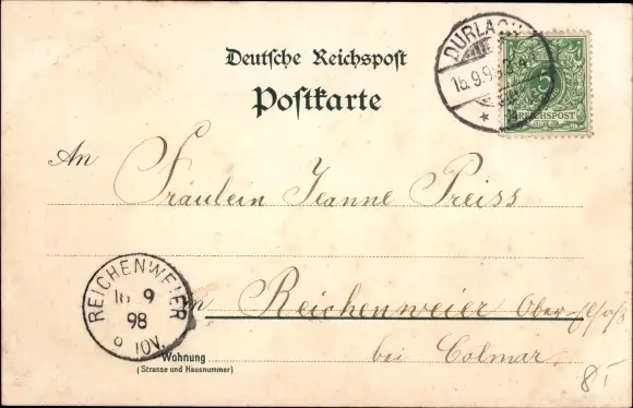 Zustand, siehe Scan, gelaufen, 1898 - ca 14 cm X 9 cm