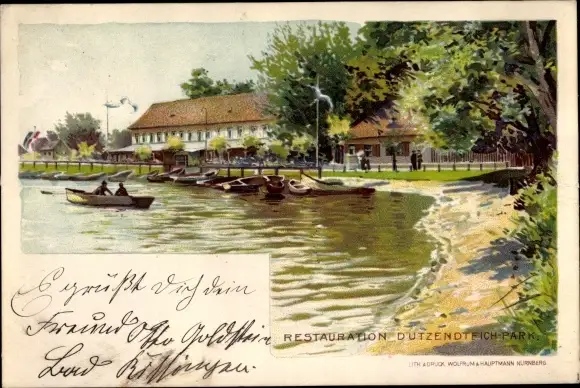 Litho Dutzendteich Nürnberg in Mittelfranken Bayern, Restauration, Ruderboote