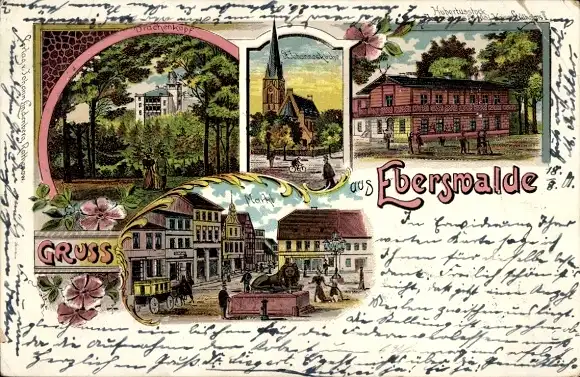 Litho Eberswalde, Drachenkopf, Kirche, Hubertusstock, Markt