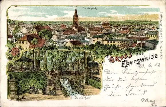 Litho Eberswalde in der Mark, Gesamtansicht, Wasserfall