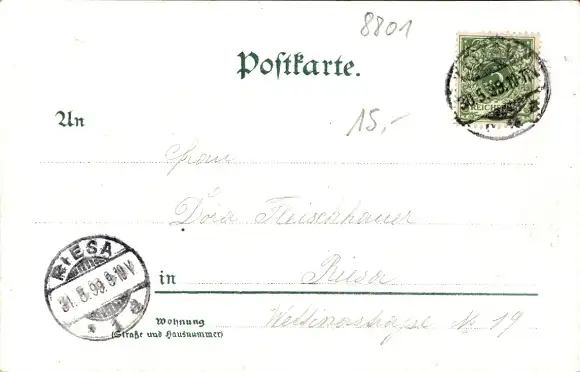 Zustand, siehe Scan, gelaufen, 1899 - ca 14 cm X 9 cm