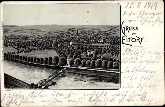 Litho Eitorf an der Sieg, Gesamtansicht, Brücke
