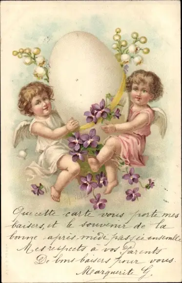 Litho Engel, Ei, Veilchen, Maiglöckchen, Kitsch