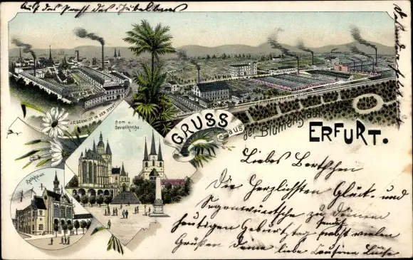 Litho Erfurt in Thüringen, Dom, Severikirche, Rathaus, Fabrik