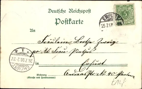 Zustand, siehe Scan, gelaufen, 1898 - ca 15 cm X 9 cm