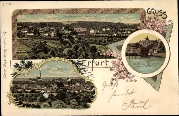 Litho Erfurt in Thüringen, Dreienbrunnen mit Steigerwald, Hochheim, Junkersand