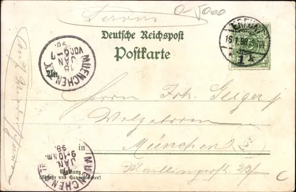 Zustand, siehe Scan, gelaufen, 1898 - ca 15 cm X 10 cm