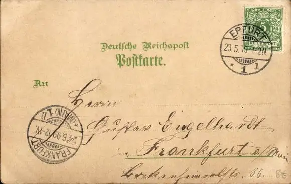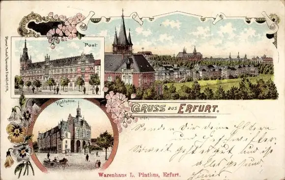 Litho Erfurt in Thüringen, Post, Rathaus