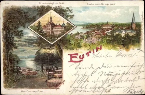 Litho Eutin in Ostholstein, Schloss, Eutiner See, Totalansicht