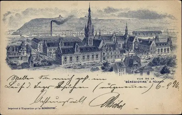 Litho Fécamp Seine Maritime, Vue de la Benedictine, Distillerie