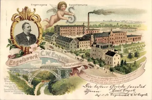 Litho Foche Solingen, Engelswerk C. W. Engels, Kaiser Wilhelm Brücke