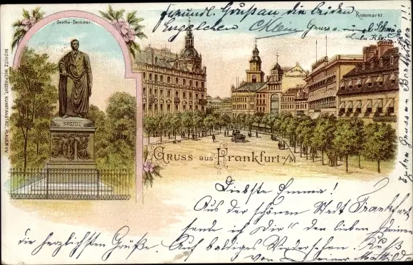Litho Frankfurt am Main, Goethe-Denkmal, Rossmarkt