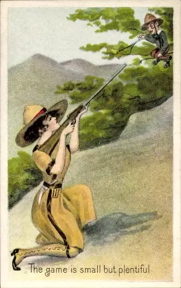 Litho Frau mit Gewehr, The game is small but plentiful, Humor